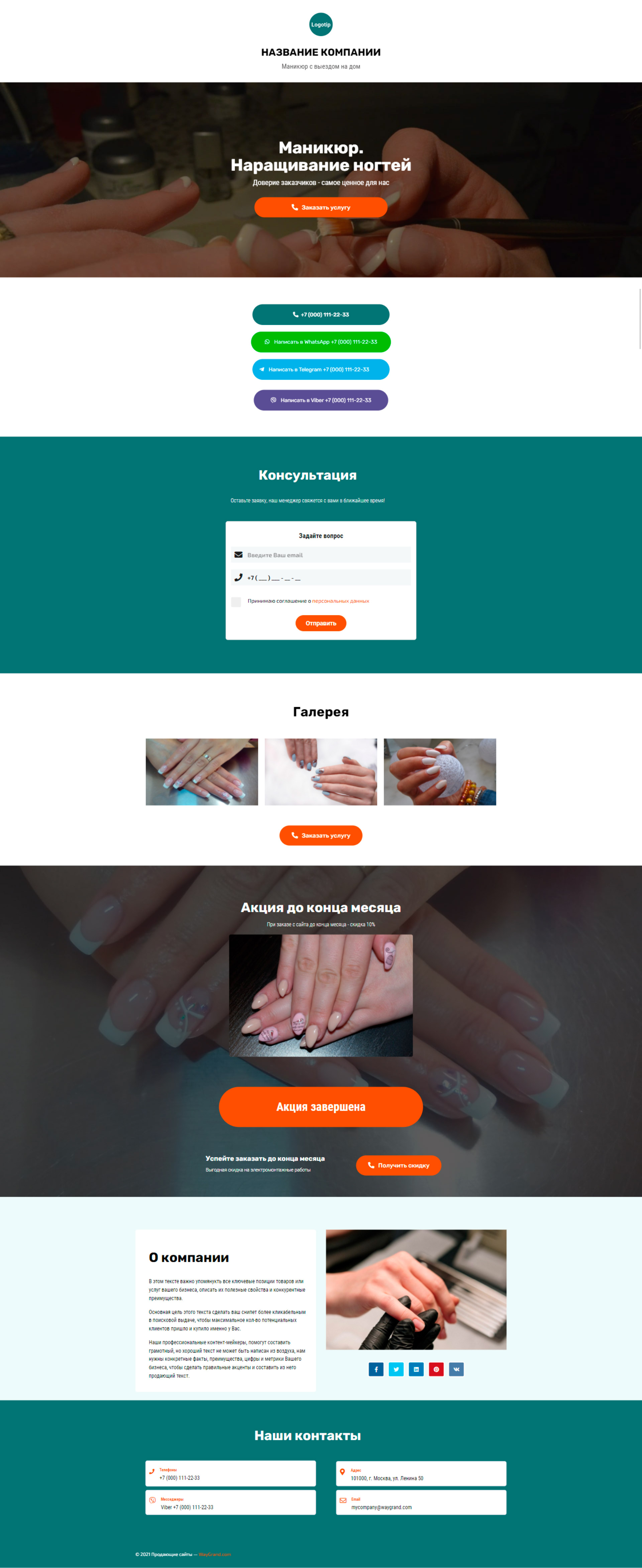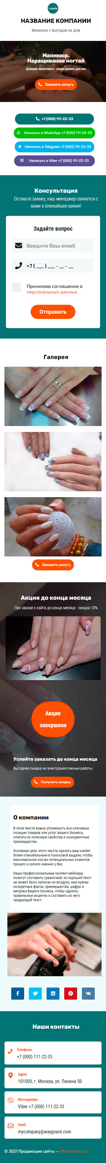 Закажите готовый продающий сайт визитка #1107101 в Кургане за 5-7 дня «под ключ»: свёрстан, отрисован и готов к рекламе. Тематика шаблона «Маникюр. Наращивание ногтей».