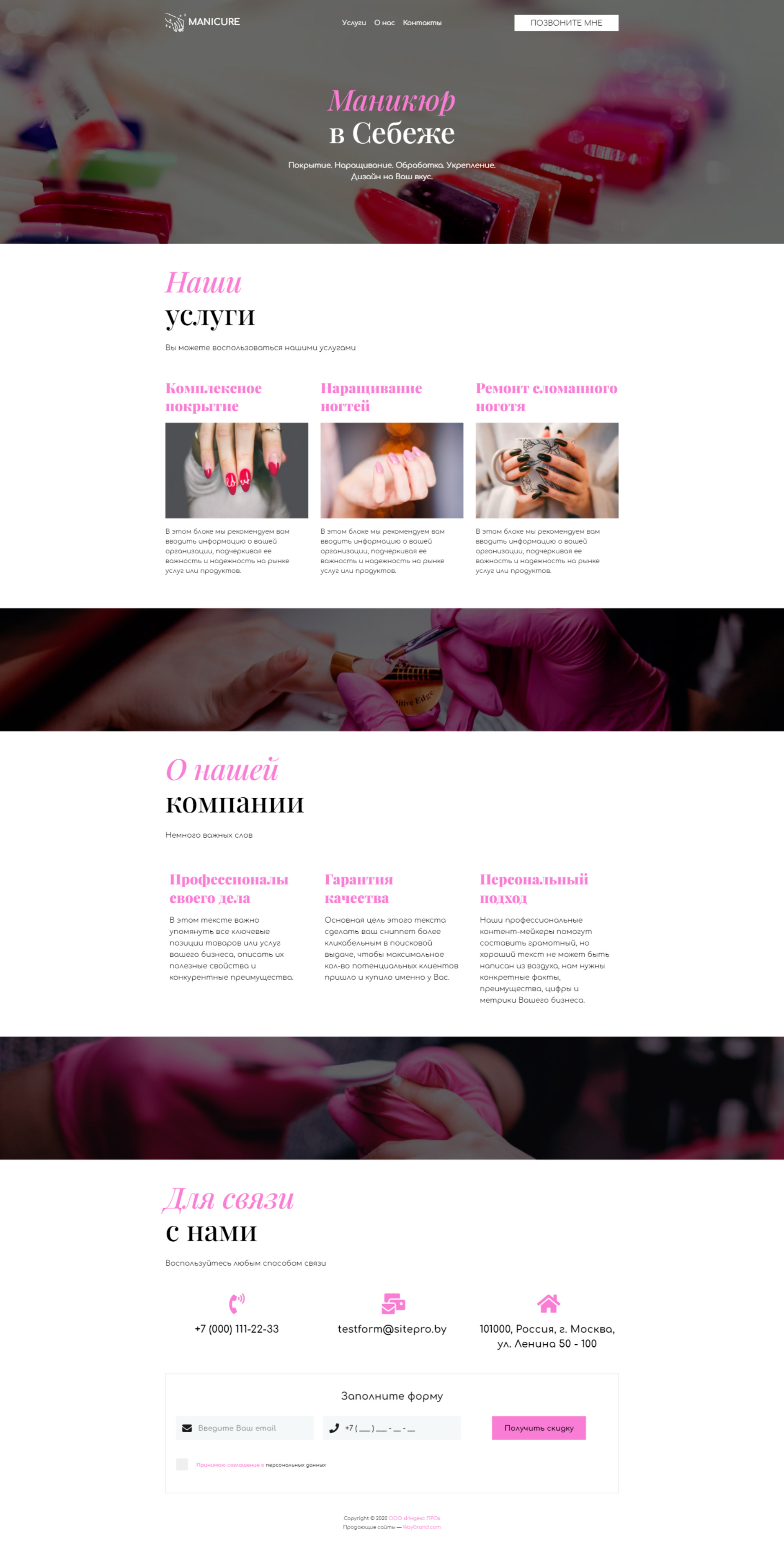 Закажите готовый продающий сайт визитка #1107102 в Кургане за 5-7 дня «под ключ»: свёрстан, отрисован и готов к рекламе. Тематика шаблона «Маникюр в Себеже».