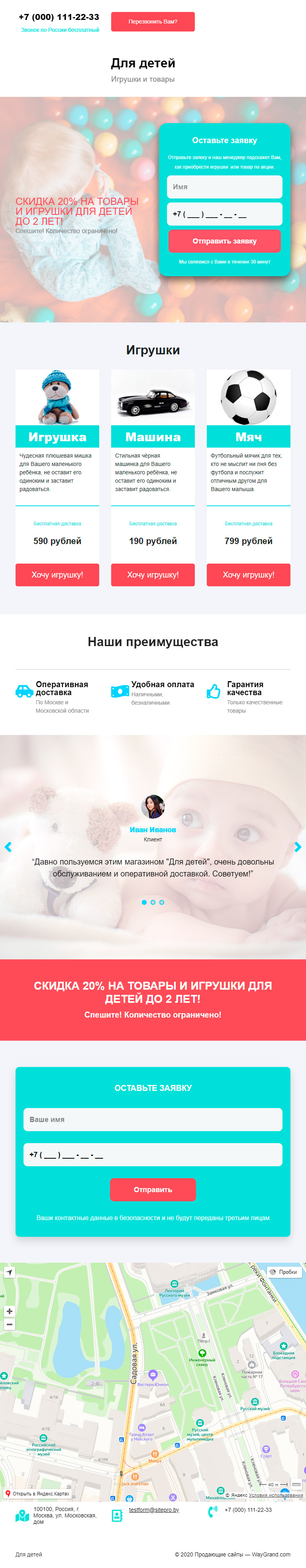 Закажите готовый продающий сайт лендинг #1509202 в Кургане за 1-3 дня «под ключ»: свёрстан, отрисован и готов к рекламе. Тематика шаблона «Игрушки и товары».