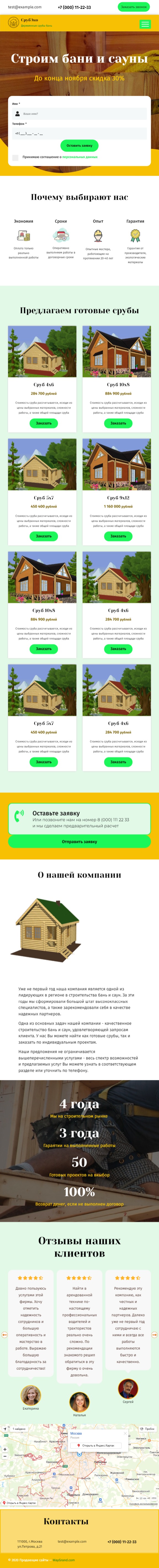 Закажите готовый продающий сайт лендинг #2172202 в Кургане за 1-3 дня «под ключ»: свёрстан, отрисован и готов к рекламе. Тематика шаблона «Строительство бань и саун».