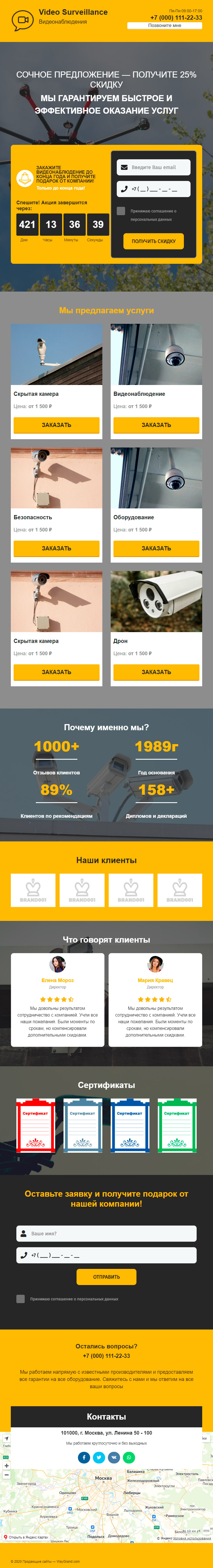 Закажите готовый продающий сайт лендинг #1609202 в Кургане за 1-3 дня «под ключ»: свёрстан, отрисован и готов к рекламе. Тематика шаблона «Видеонаблюдение».