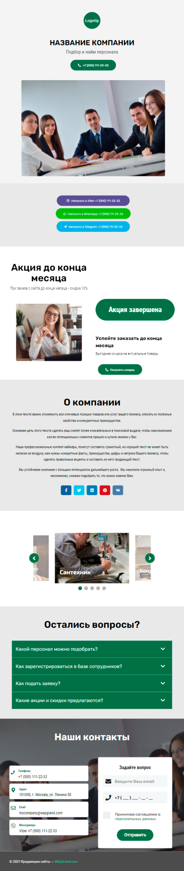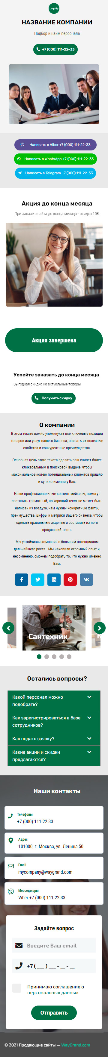 Закажите готовый продающий сайт визитка #1415101 в Кургане за 5-7 дня «под ключ»: свёрстан, отрисован и готов к рекламе. Тематика шаблона «Подбор и найм персонала».