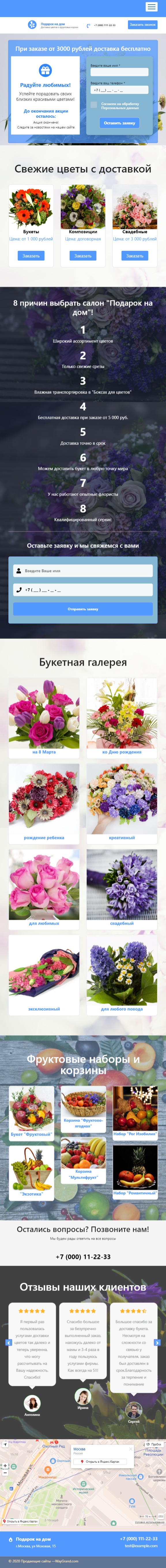 Закажите готовый продающий сайт лендинг #2404203 в Кургане за 1-3 дня «под ключ»: свёрстан, отрисован и готов к рекламе. Тематика шаблона «Доставка букетов на дом».
