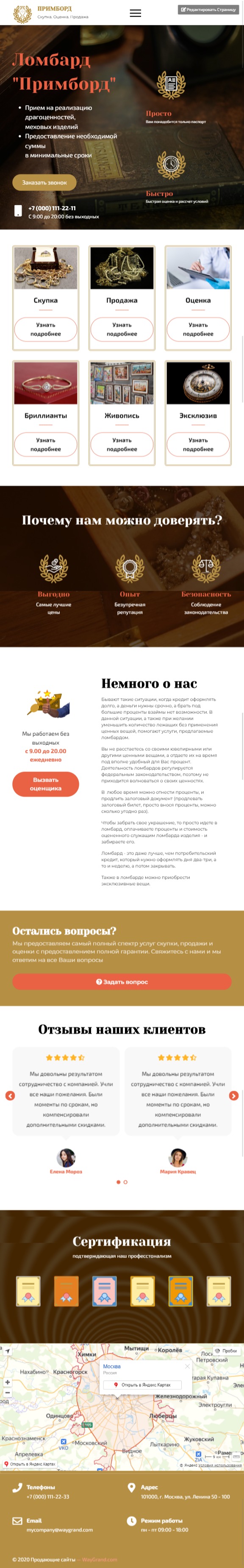 Закажите готовый продающий сайт лендинг #2408201 в Кургане за 1-3 дня «под ключ»: свёрстан, отрисован и готов к рекламе. Тематика шаблона «Ломбард».