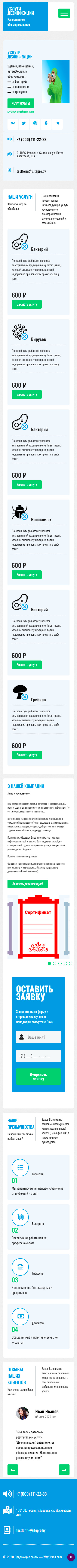 Закажите готовый продающий сайт лендинг #0608201 в Кургане за 1-3 дня «под ключ»: свёрстан, отрисован и готов к рекламе. Тематика шаблона «Услуги дезинфекции».