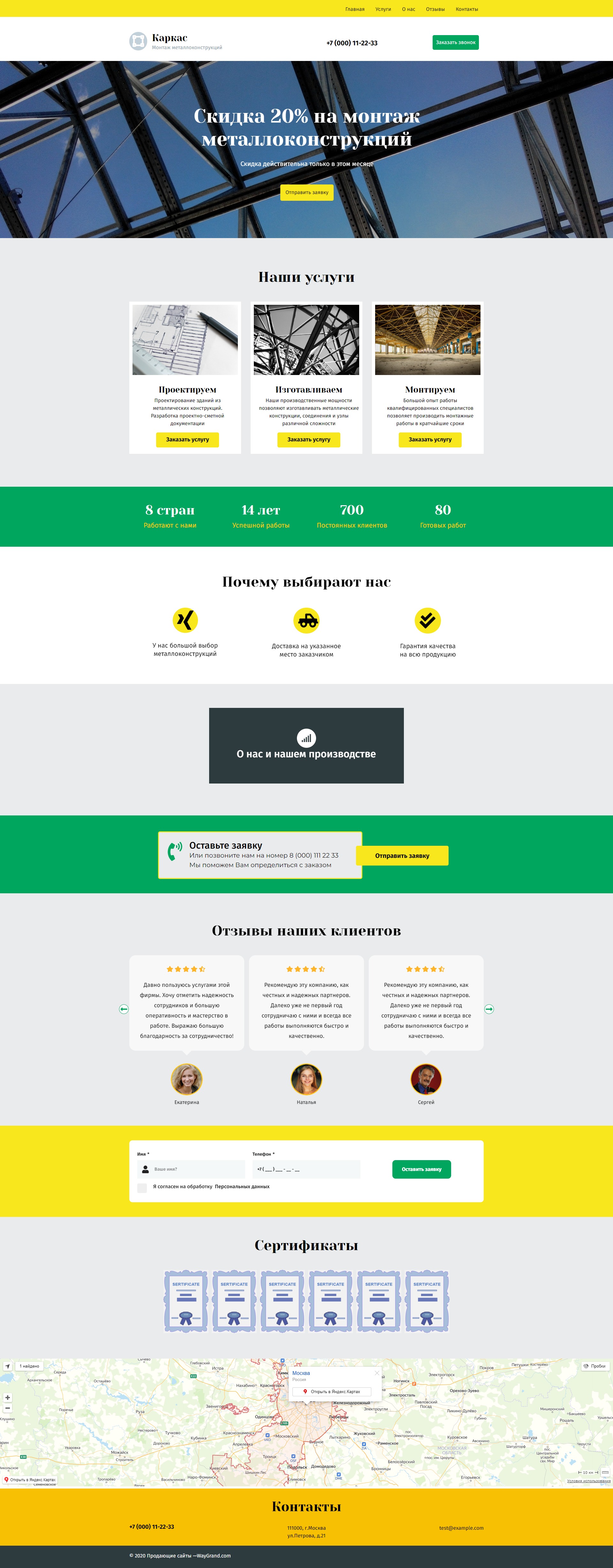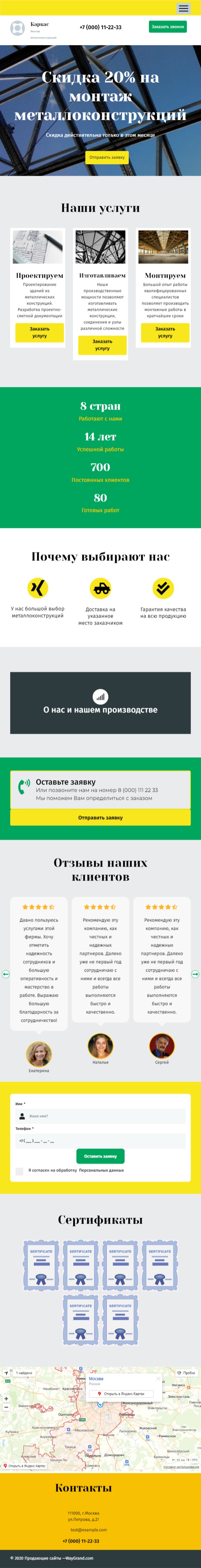 Закажите готовый продающий сайт лендинг #2027201 в Кургане за 1-3 дня «под ключ»: свёрстан, отрисован и готов к рекламе. Тематика шаблона «Металлоконструкции».