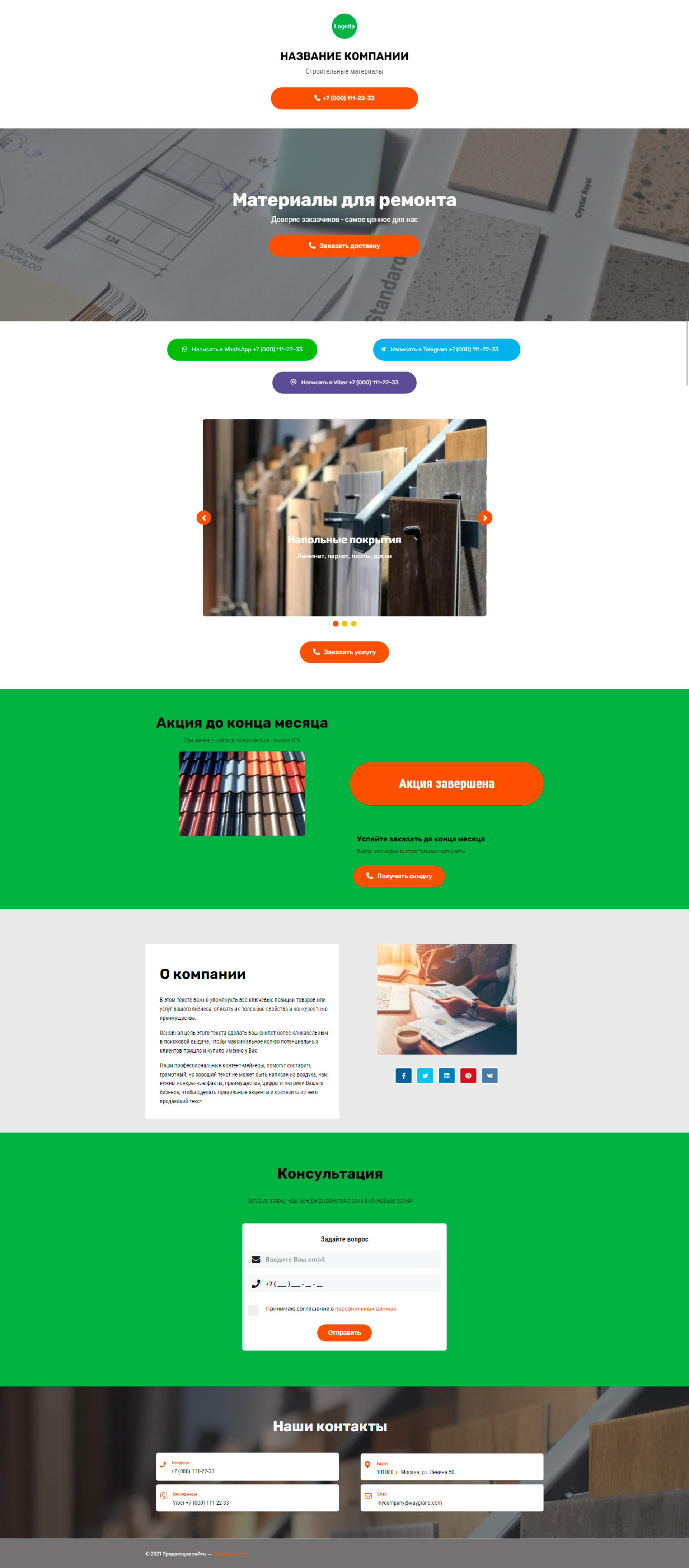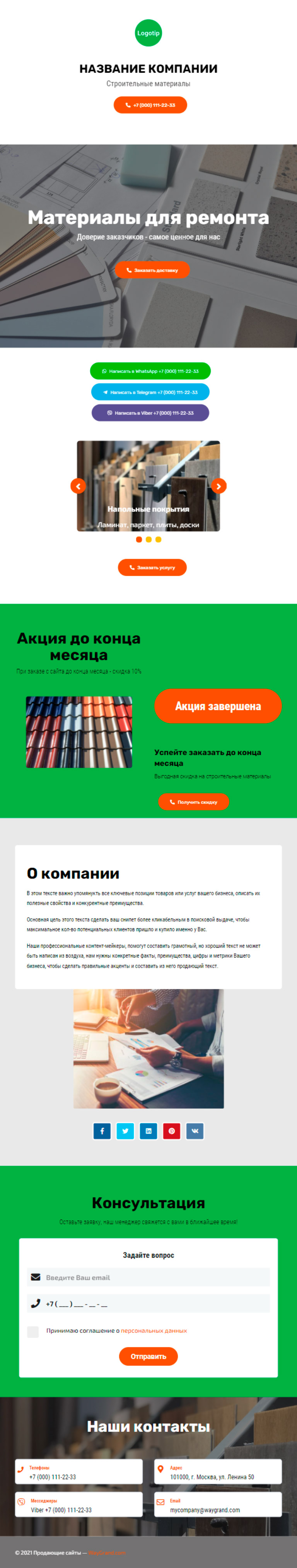 Закажите готовый продающий сайт визитка #2050101 в Кургане за 5-7 дня «под ключ»: свёрстан, отрисован и готов к рекламе. Тематика шаблона «Строительные материалы».