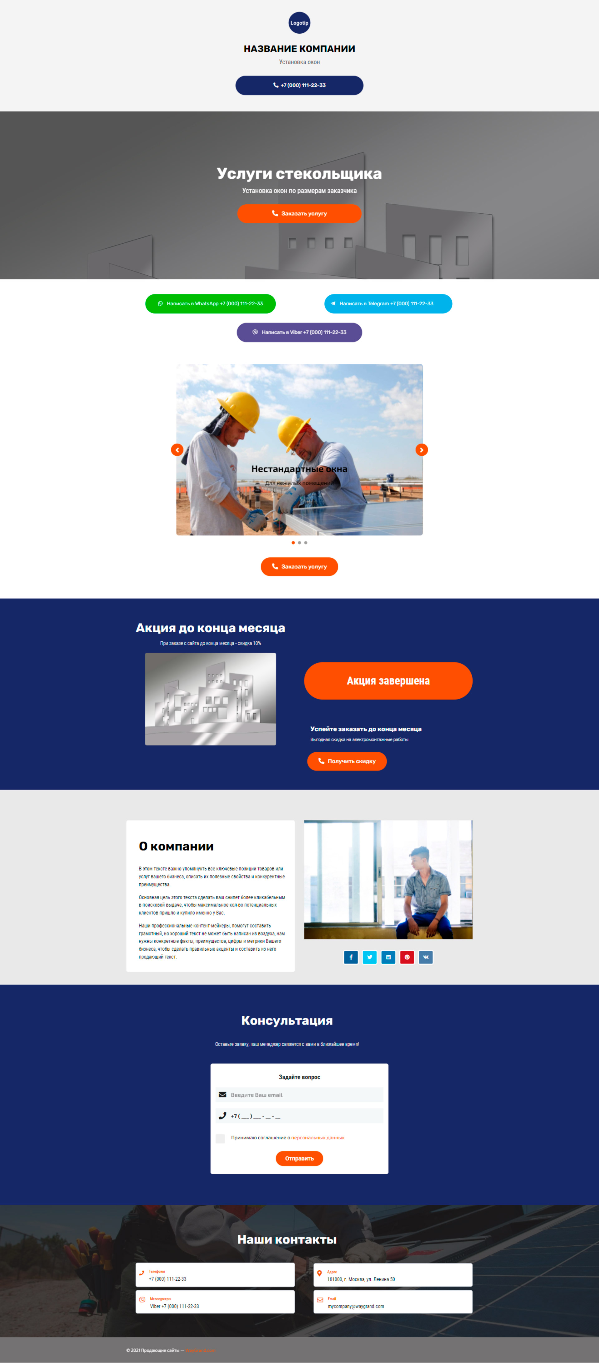 Закажите готовый продающий сайт визитка #2138101 в Кургане за 5-7 дня «под ключ»: свёрстан, отрисован и готов к рекламе. Тематика шаблона «Установка окон».