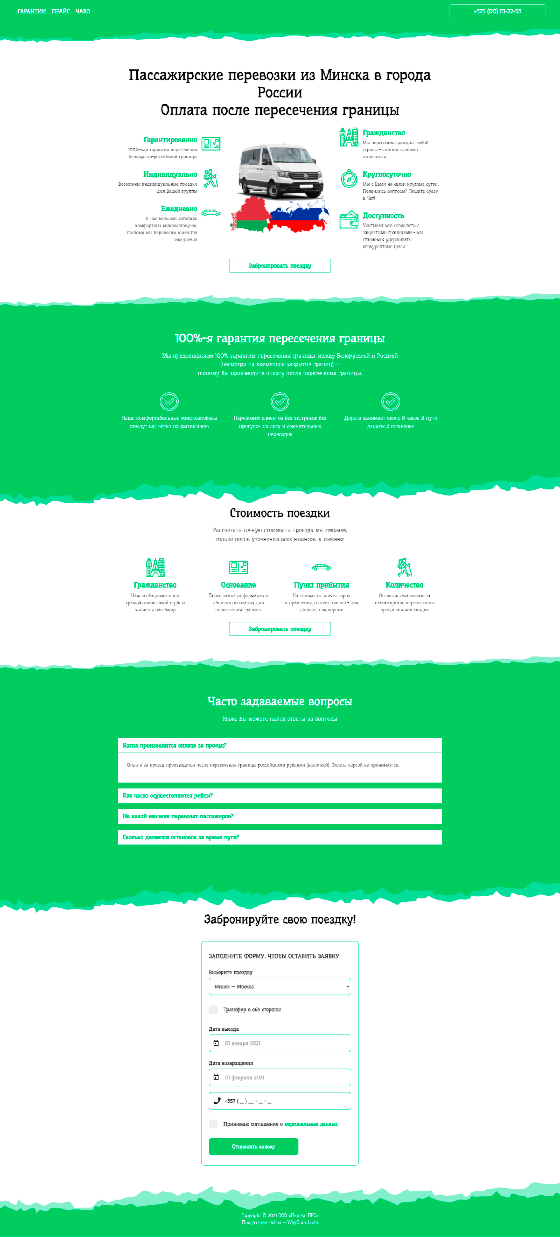 Закажите готовый продающий сайт лендинг #2528202 в Кургане за 1-3 дня «под ключ»: свёрстан, отрисован и готов к рекламе. Тематика шаблона «Пассажирские перевозки из Минска в города России».