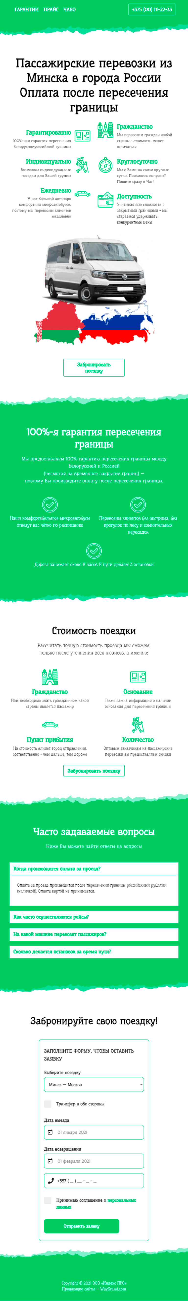 - Промоблок "Пассажирские перевозки из Минска в города России"