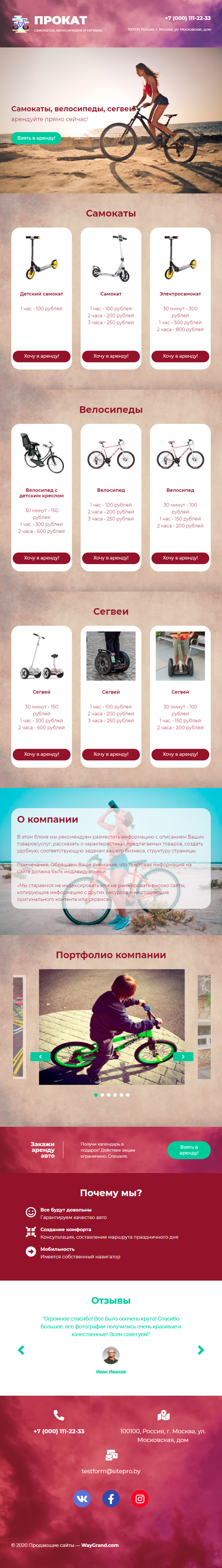 Закажите готовый продающий сайт лендинг #1907201 в Кургане за 1-3 дня «под ключ»: свёрстан, отрисован и готов к рекламе. Тематика шаблона «Прокат самокатов и велосипедов».