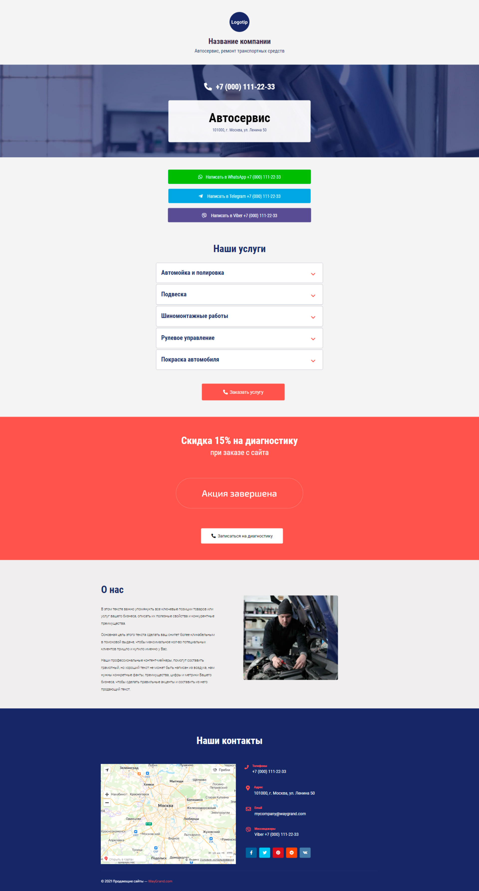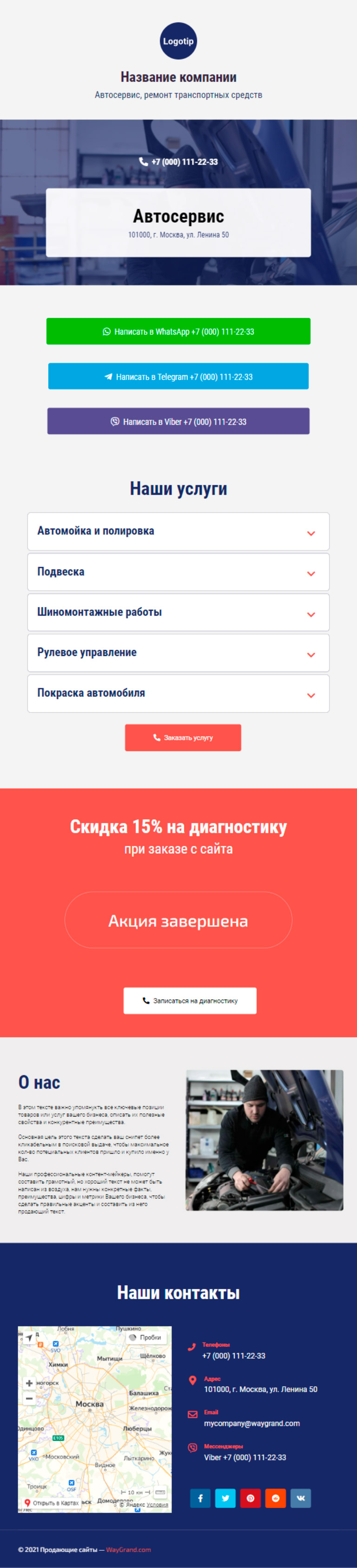 Закажите готовый продающий сайт визитка #0210101 в Кургане за 5-7 дня «под ключ»: свёрстан, отрисован и готов к рекламе. Тематика шаблона «Автосервис, ремонт транспортных средств».