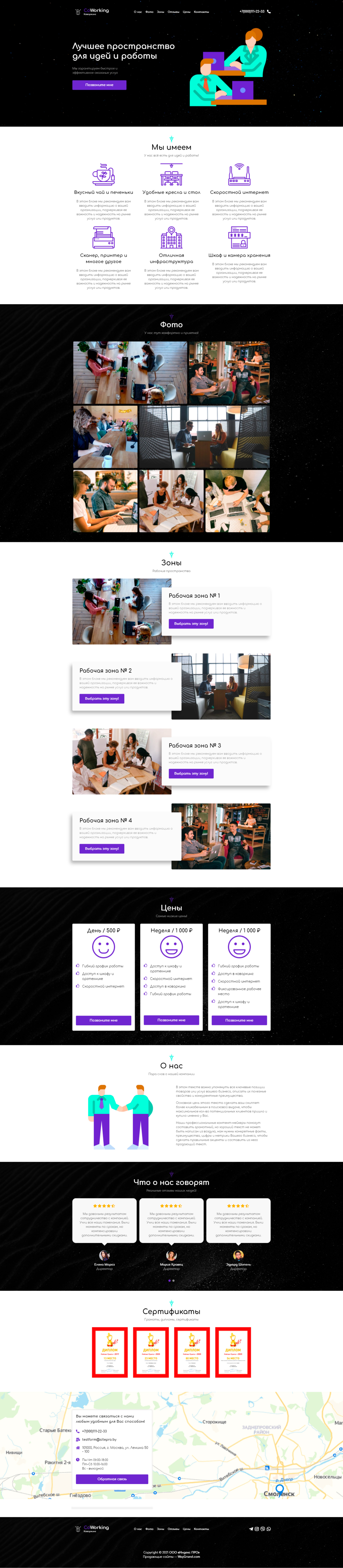 Закажите готовый продающий сайт лендинг #2130201 в Кургане за 1-3 дня «под ключ»: свёрстан, отрисован и готов к рекламе. Тематика шаблона «Коворкинг».