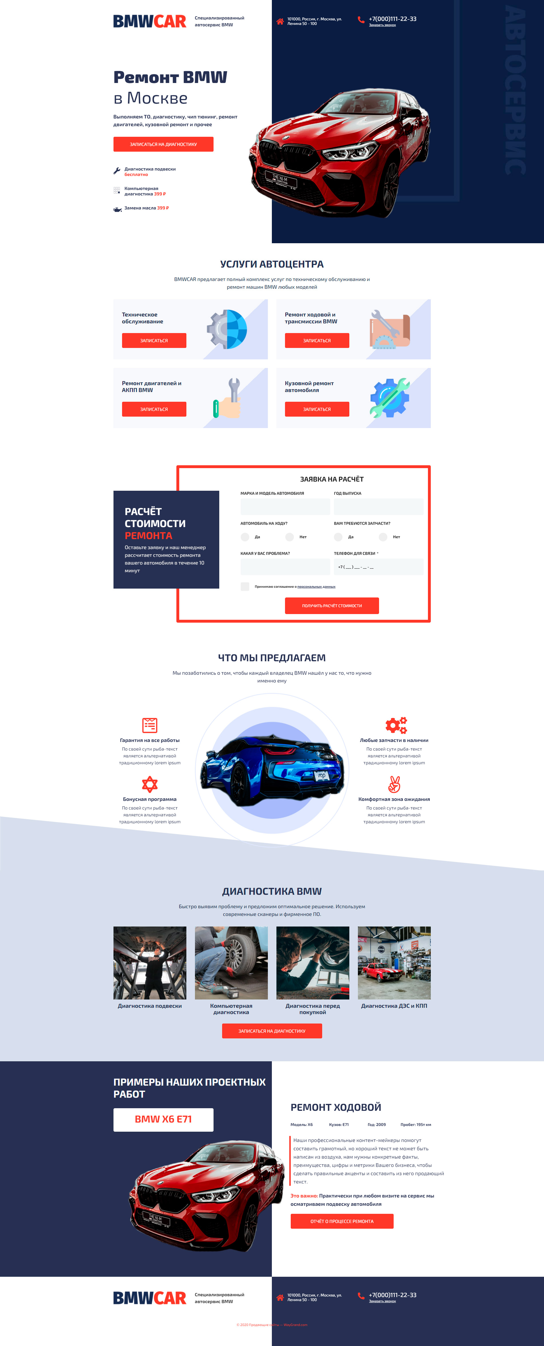 Закажите готовый продающий сайт лендинг #0210202 в Кургане за 1-3 дня «под ключ» по выгодным ценам на WayGrand: свёрстан, отрисован и готов к рекламе. Тематика шаблона «Ремонт BMW».