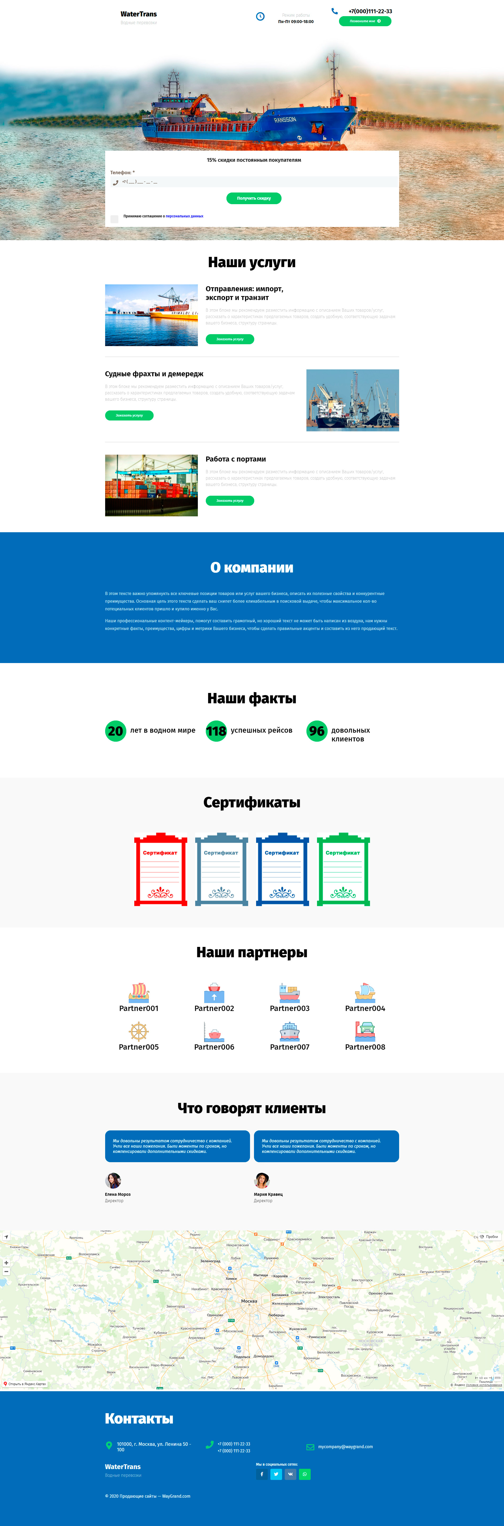 Закажите готовый продающий сайт лендинг #1908201 в Кургане за 1-3 дня «под ключ»: свёрстан, отрисован и готов к рекламе. Тематика шаблона «Морские перевозки».
