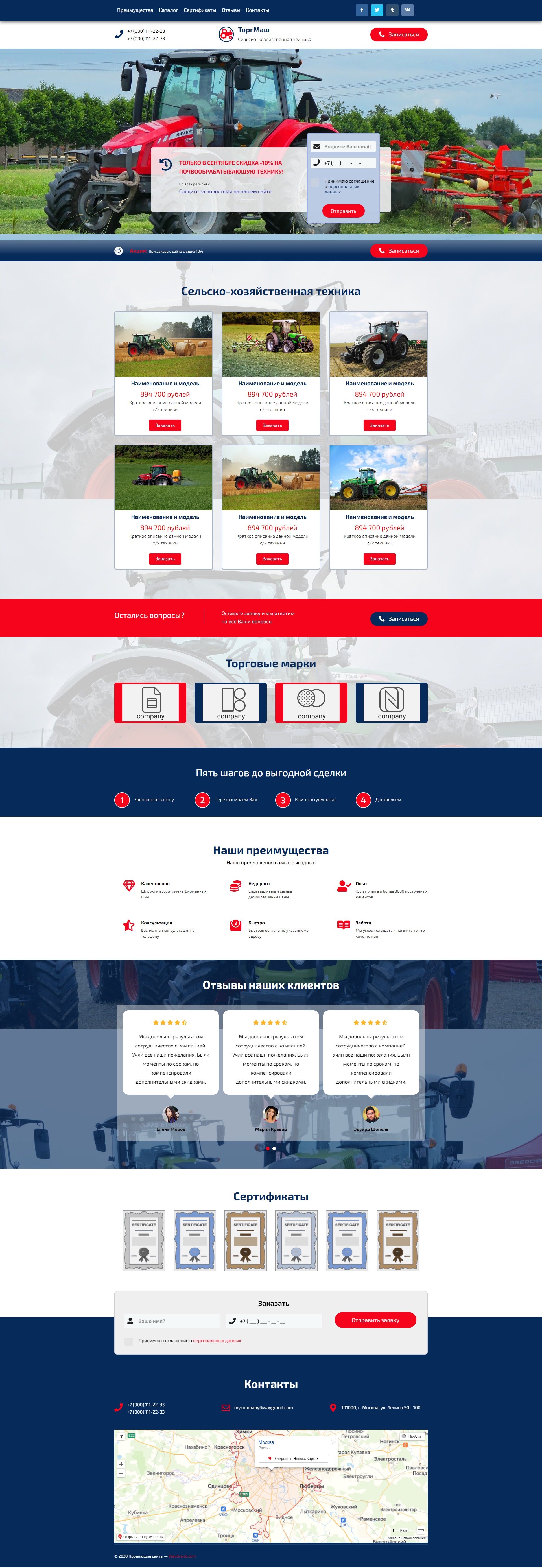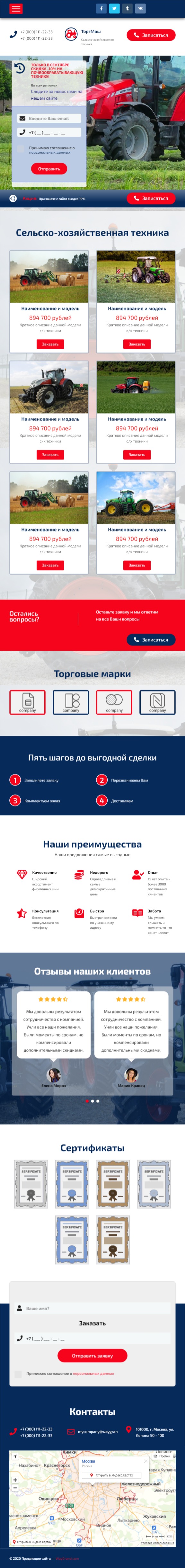 Закажите готовый продающий сайт лендинг #2553202 в Кургане за 1-3 дня «под ключ»: свёрстан, отрисован и готов к рекламе. Тематика шаблона «Сельско-хозяйственная техника».