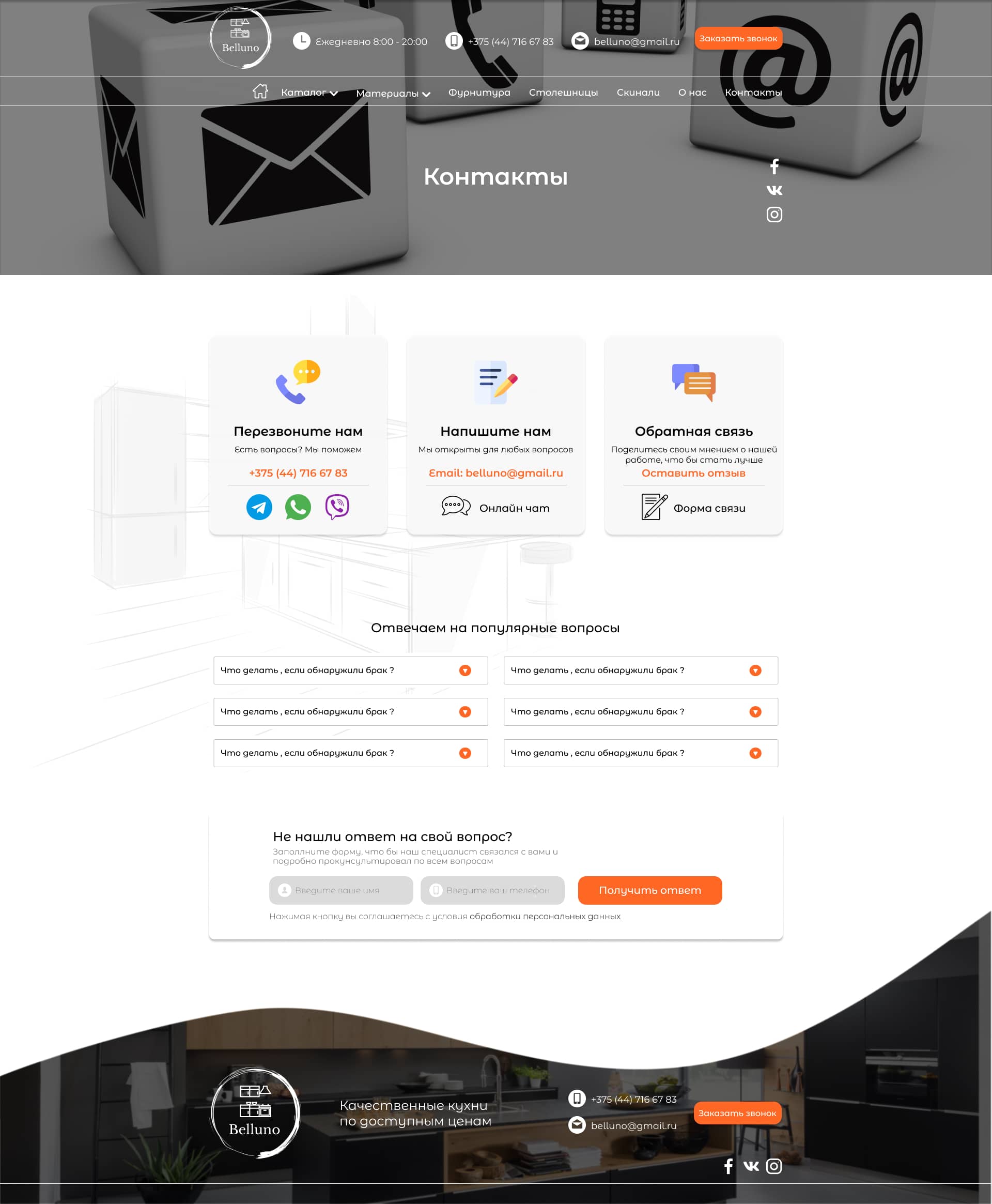 Закажите готовый продающий сайт визитка #282 в Кургане за 5-7 дня «под ключ»: свёрстан, отрисован и готов к рекламе. Тематика шаблона «Кухни».