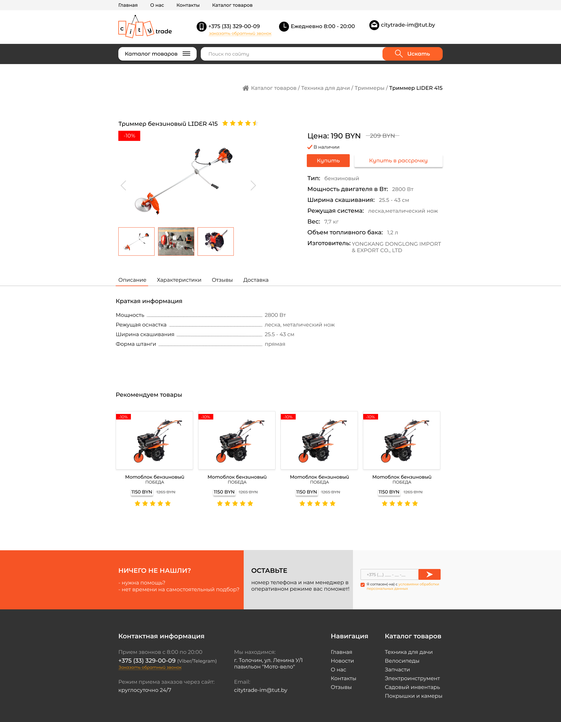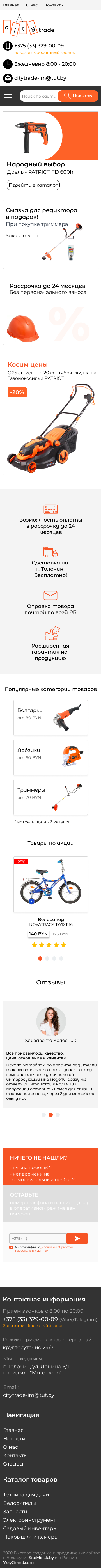 Закажите готовый продающий сайт визитка #281 в Кургане за 5-7 дня «под ключ»: свёрстан, отрисован и готов к рекламе. Тематика шаблона «Розничная продажа садовой техники, велосипедов».