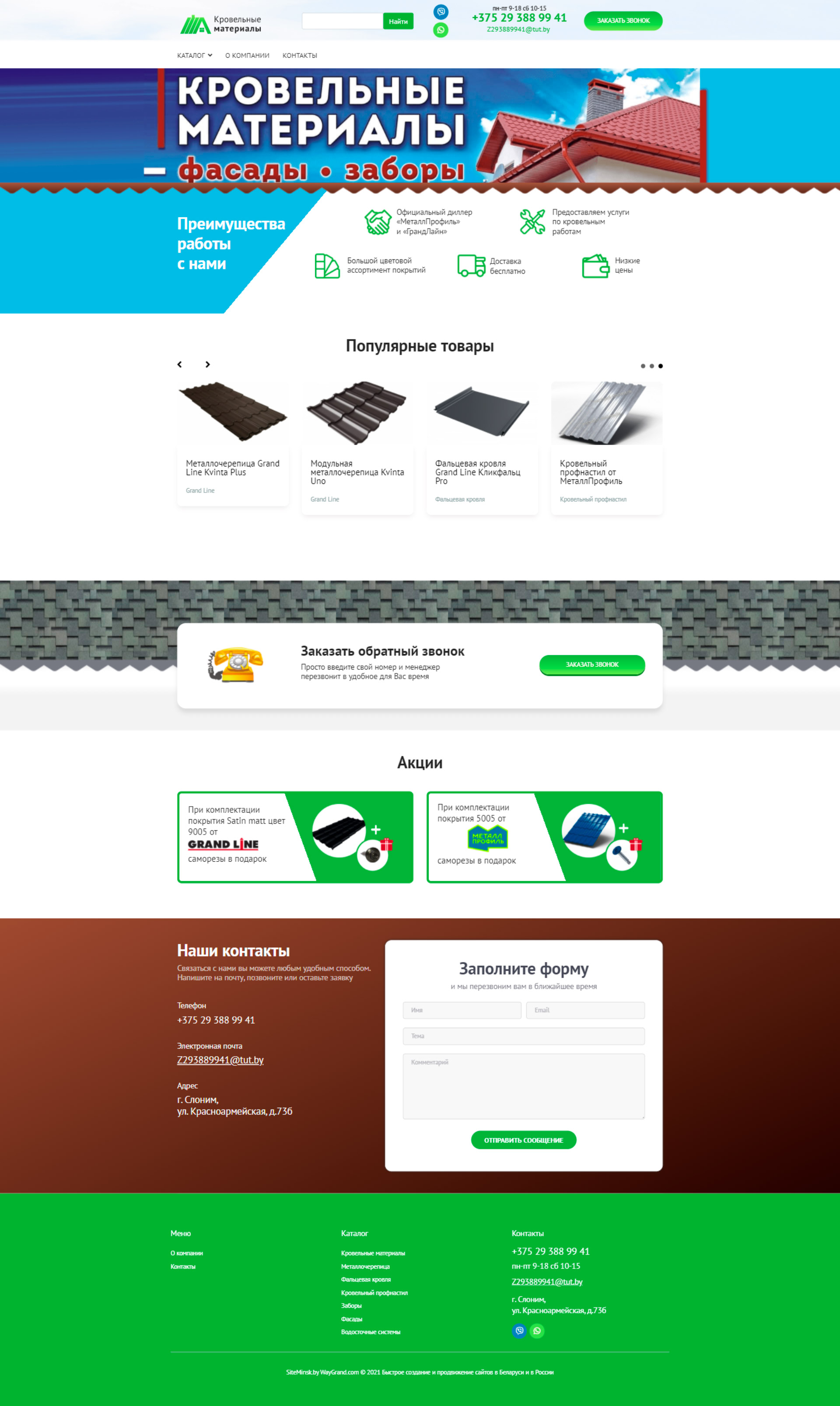 Закажите готовый продающий сайт визитка #324 в Кургане «под ключ» на waygrand по выгодной цене: свёрстан, отрисован и готов к рекламе. Тематика шаблона «Кровельные материалы».