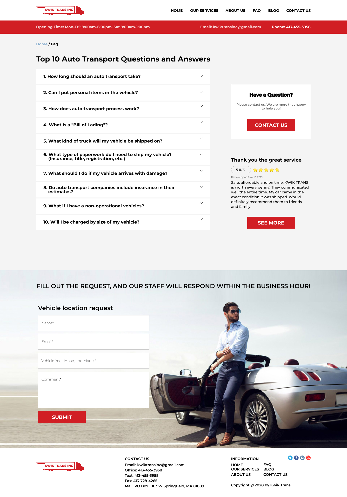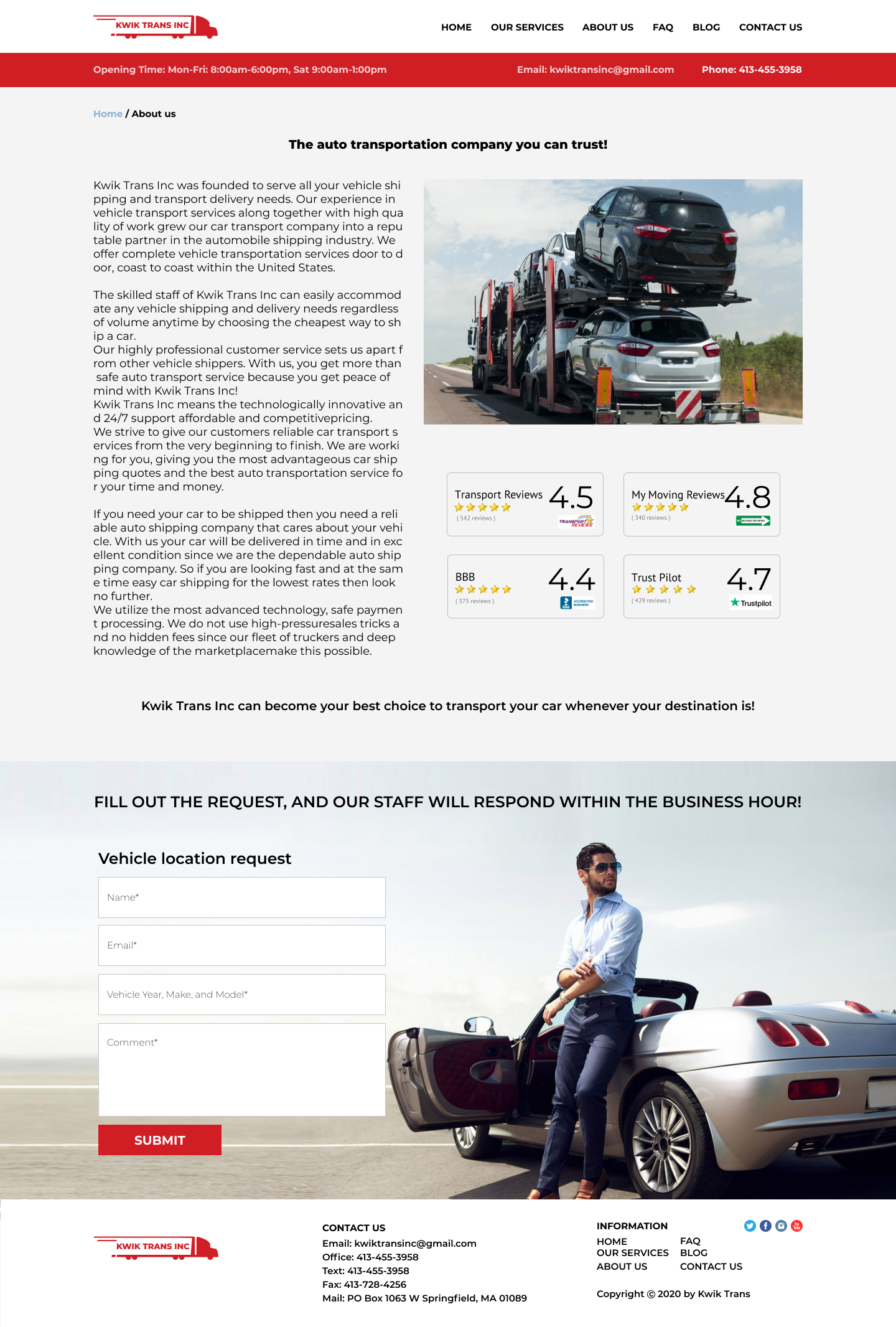 Закажите готовый продающий сайт визитка #223 в Кургане за 5-7 дня «под ключ»: свёрстан, отрисован и готов к рекламе. Тематика шаблона «Safe & Reliable National Auto Transport».